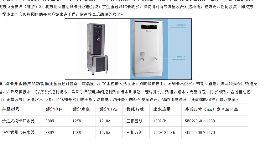 校園開水器投資模式簡介公寓鍋爐由于供水時間短、持續(xù)供水質(zhì)量不高、水溫波動大、